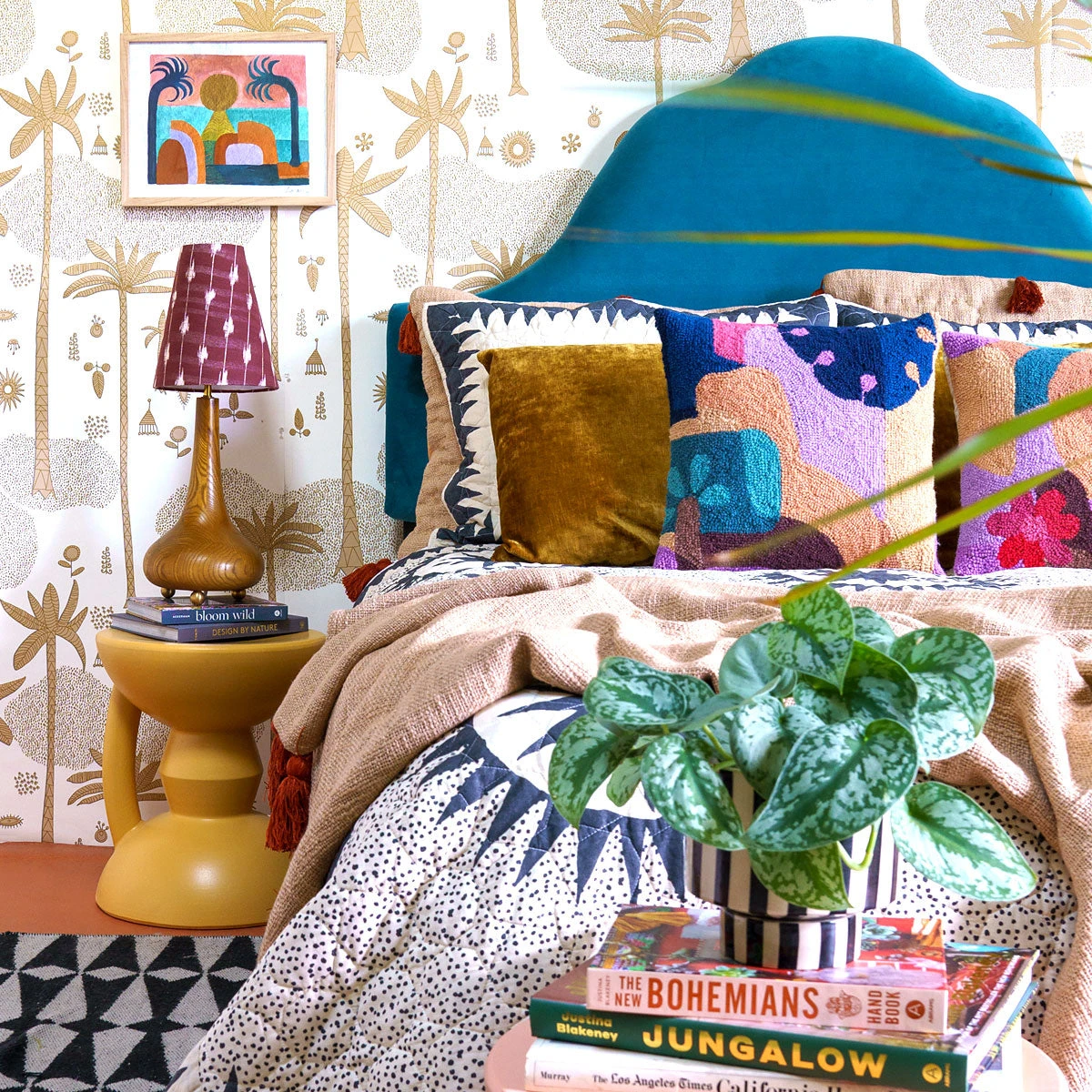 Whether you need an extra seat that can tuck away easily, a bedside table or some extra seating at the foot of you bed — these hourglass stools are a multi-tasking furniture hero! Designed by Justina Blakeney exclusively for Jungalow — We’re especially smitten with the unique hourglass shape. Add your favorite stack of books or plantie to make this stool really come to life.