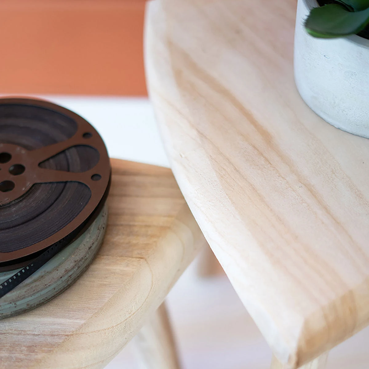 We love how versatile these wooden stools are — They’re perfect for setting down your tray of sips + snacks. Added bonus – they can also be used for plant stands!