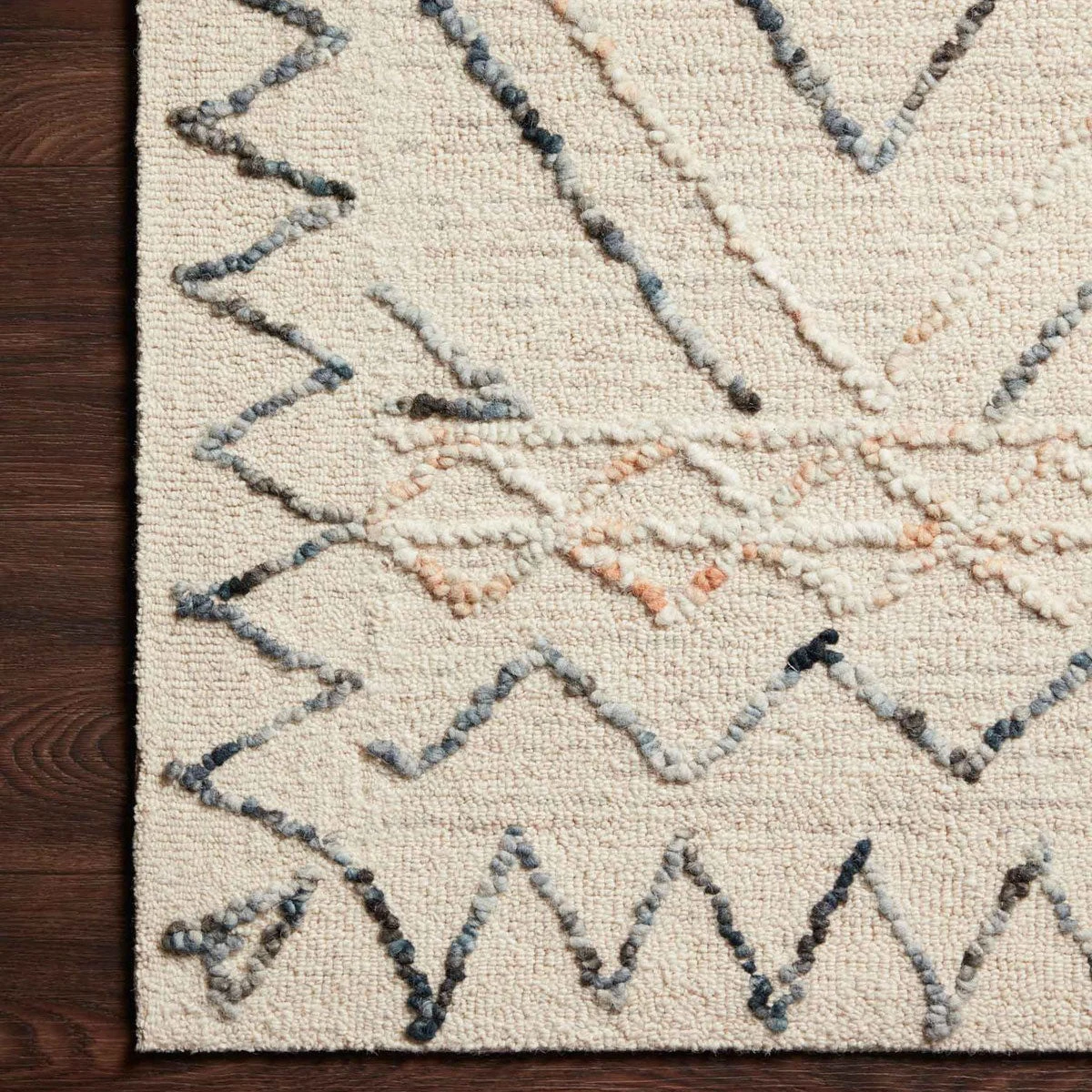 Inspired by abstract and geometric freehand art, the Leela Collection is designed by Justina Blakeney for Loloi. Hooked of 100% wool pile, the designs create the illusion of visual movement.