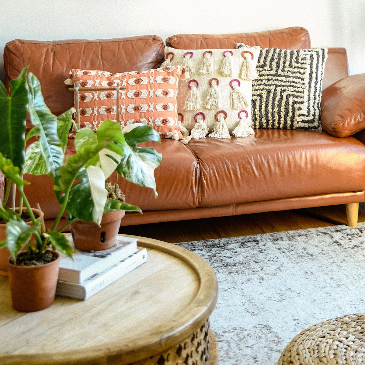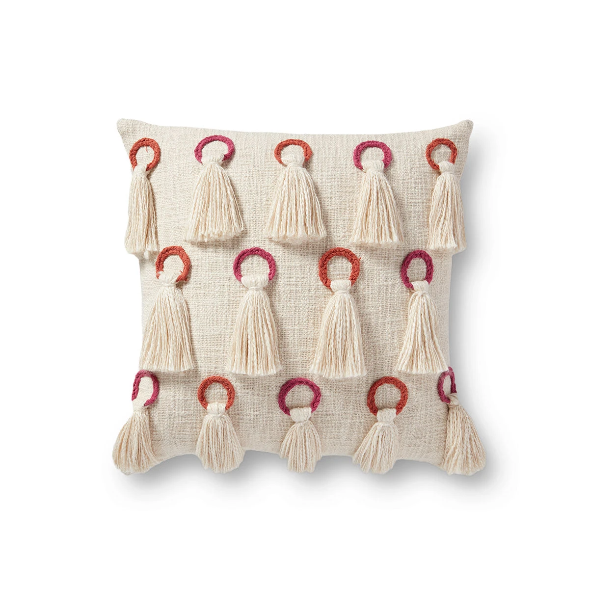 Deisgned by Justina Blakeney for Loloi, this ultimate tassel pillow features neutral yummy tassels with sunset colored embroidery at the base — we consider pillows our secret styling weapon so the more tassels the better!