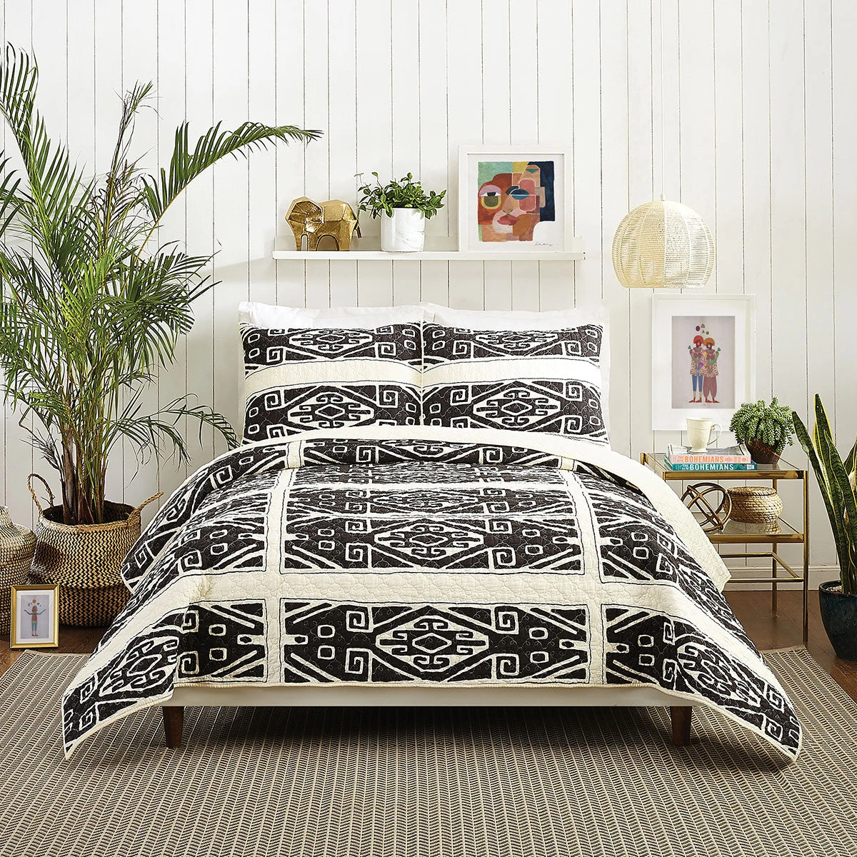 Our Cosmos pattern designed by Justina Blakeney® is featured on this cozy, lightweight quilt set. We love the contrast of black & white and the bold impact of the modern, geometric motifs. Jazz it up with colorful pillows & throws, or keep it classic ‘n’ cool with tonal neutral accents.