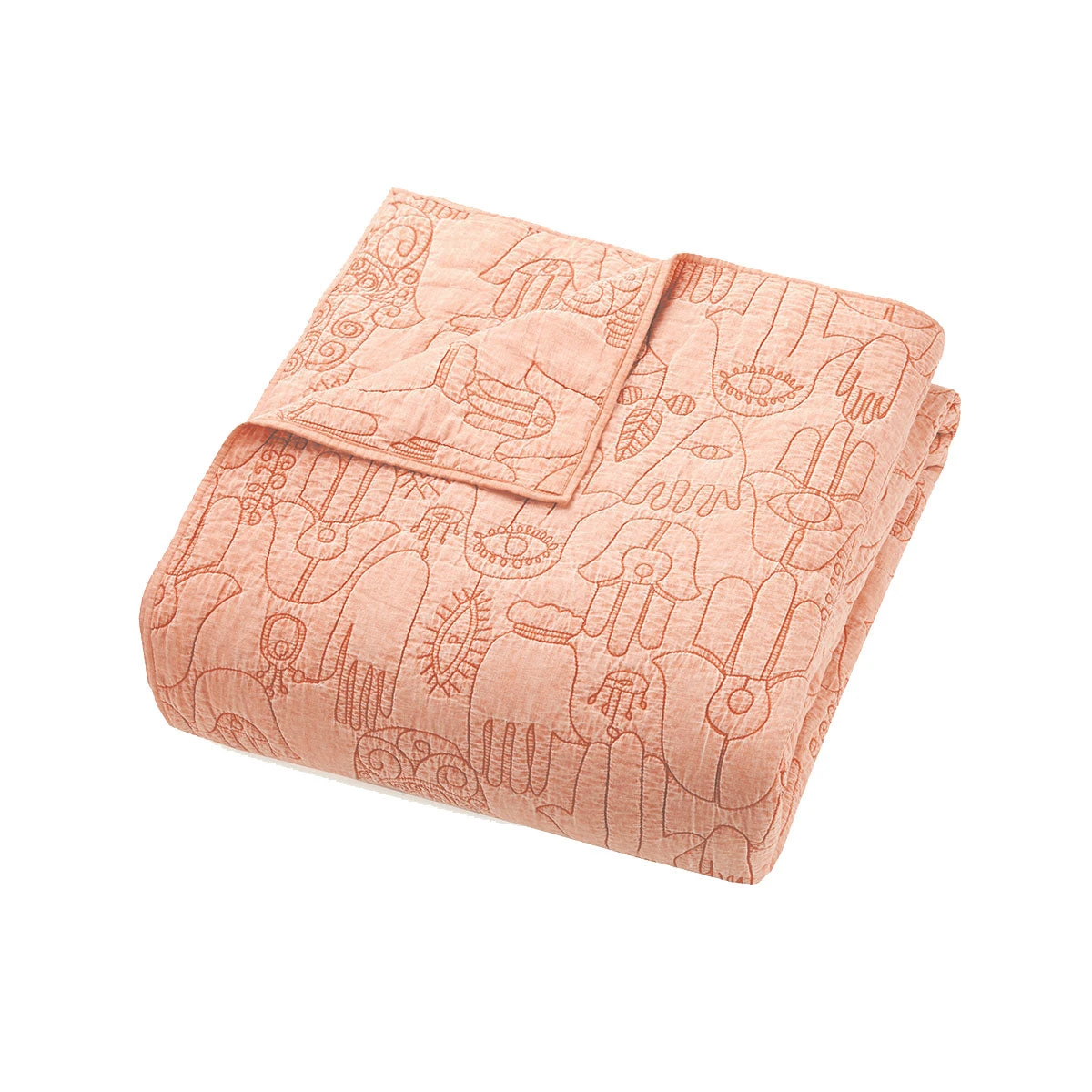 This mega-cozy, stone washed quilt set is adorned with embroidered, hand-drawn illustrations of hamsas from Justina’s own hamsa amulet collection from on her global escapades. The hamsa, also known as the Hand of God or the Hand of Fatima, is an ancient amulet symbolozing protection, happiness, luck, health and good fortune.