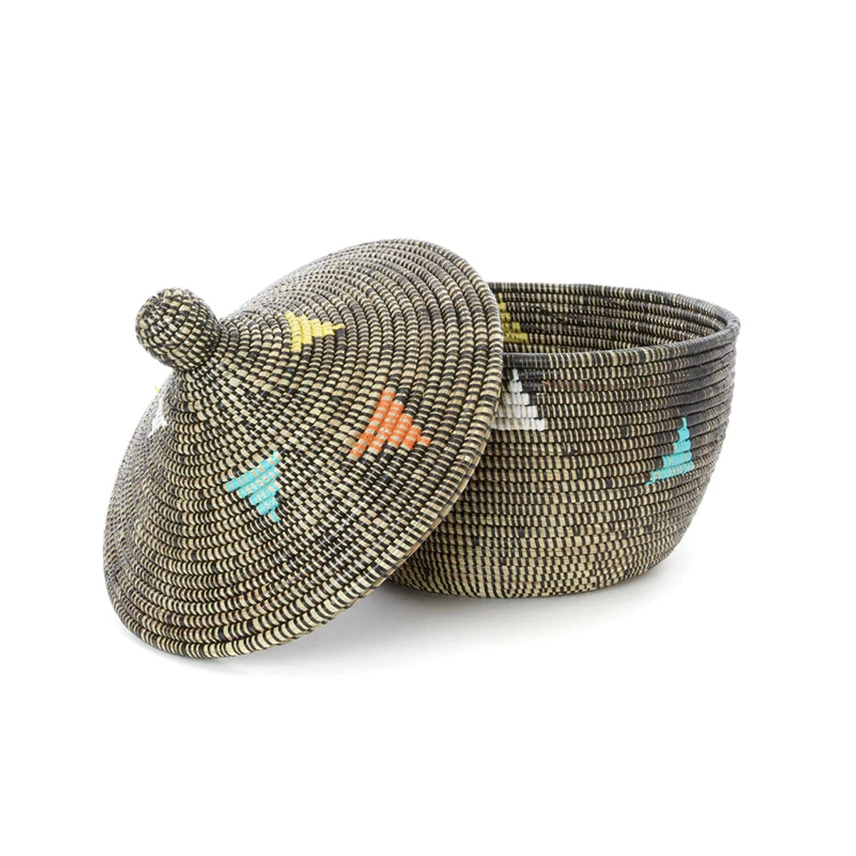 These hampers are made by artisans in Senegal and are perfect for laundry or These baskets are woven in the coil style by binding dried cattail stalks with plastic strips salvaged from a local mat factory.Â